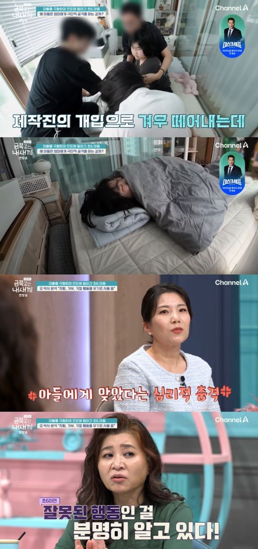 금쪽이 엄마는 “때린 적은 있는데 머리채까지 잡고 그런 건 처음이었다. 아픈 것도 아픈 건데 내가 아들한테 맞는 엄마가 되다니 심리적인 게 충격이 컸다”라며 눈물을 흘렸다.