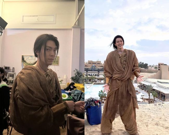 황금빛 장식이 들어간 갈색 톤의 의상을 걸친 채 스튜디오에서 카메라를 응시하거나, 사막 배경의 야외 촬영지에서 환한 미소를 짓고 서 있는 장면이 눈길을 끈다. 더위와 싸우며도 즐겁게 촬영에 임하는 분위기가 그대로 전해진다.