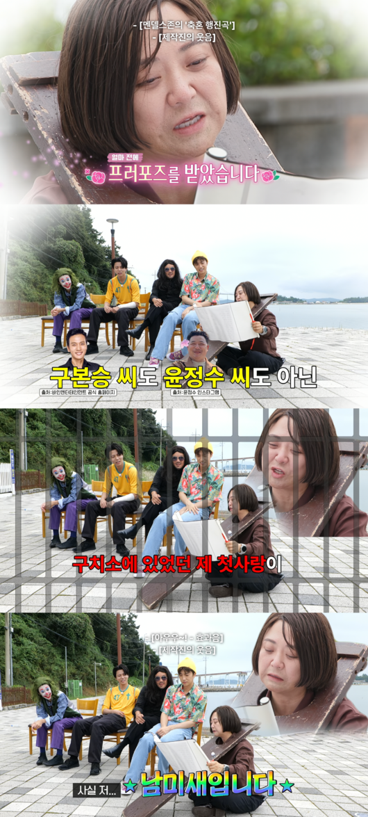 또한 김숙은 “이왕 반성하는 거 하나만 더 하겠다. 저 얼마 전에 프러포즈를 받았다. 구본승 씨도, 윤정수 씨도 아닌 제 첫사랑. 구치소에 있던 제 첫사랑이 얼마 전 출소하셨고, 정식으로 프러포즈를 받았다”고 말해 출연진을 놀라게 했다.