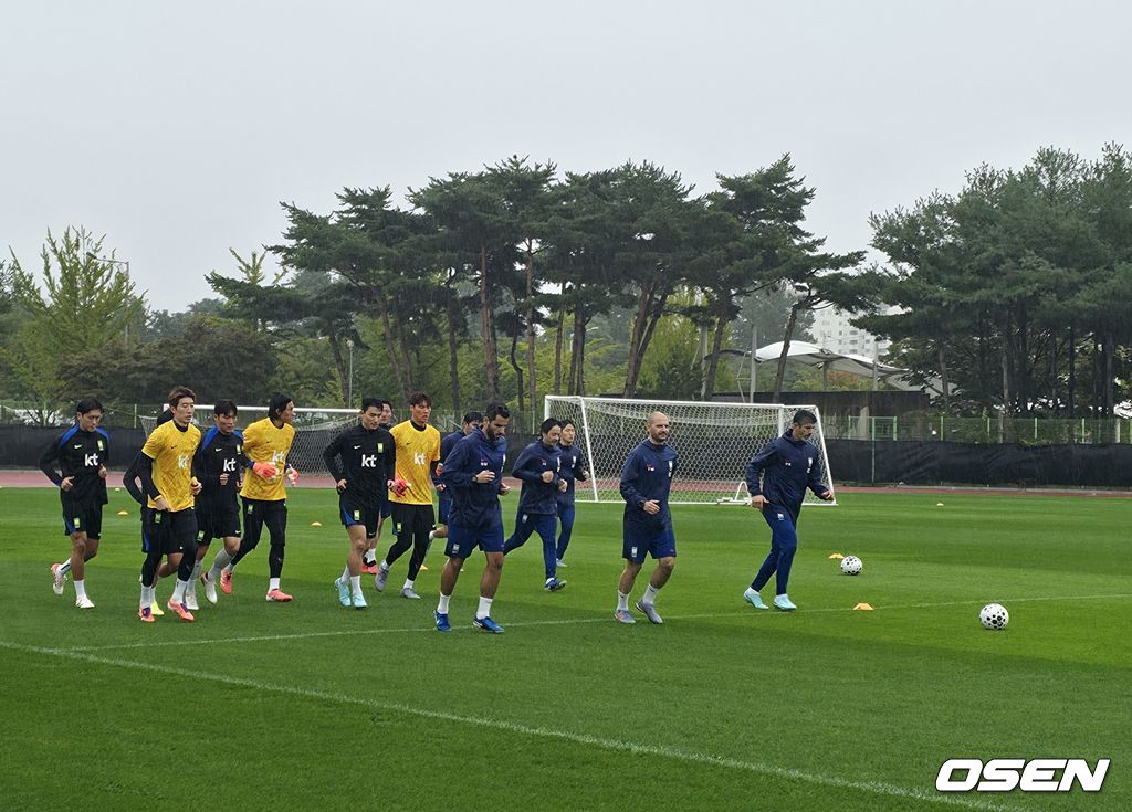 비 내리는 고양에서 홍명보호가 10월 A매치를 향한 담금질을 시작했다. 바람까지 불어 다소 쌀쌀한 날씨 속에서도 대표팀은 밝은 분위기 속에서 첫 훈련을 소화했다.