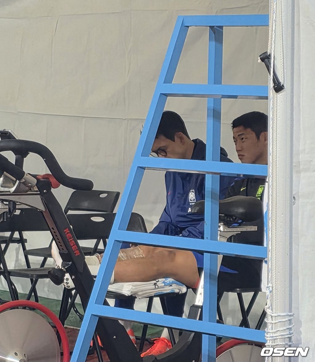훈련 중 황희찬의 예상치 못한 통증이 발생했다. 훈련 도중 황희찬이 갑자기 오른쪽 종아리를 잡으며 불편한 표정을 지었다. 황희찬은 먼저 훈련을 중단한 채 스스로 걸어나와 벤치 쪽으로 이동했다. 이후 오른쪽 종아리에 아이싱을 하며 그라운드 밖에서 휴식을 취했다. 표정은 어두웠다. 얼굴을 감싸쥐기도 했다.