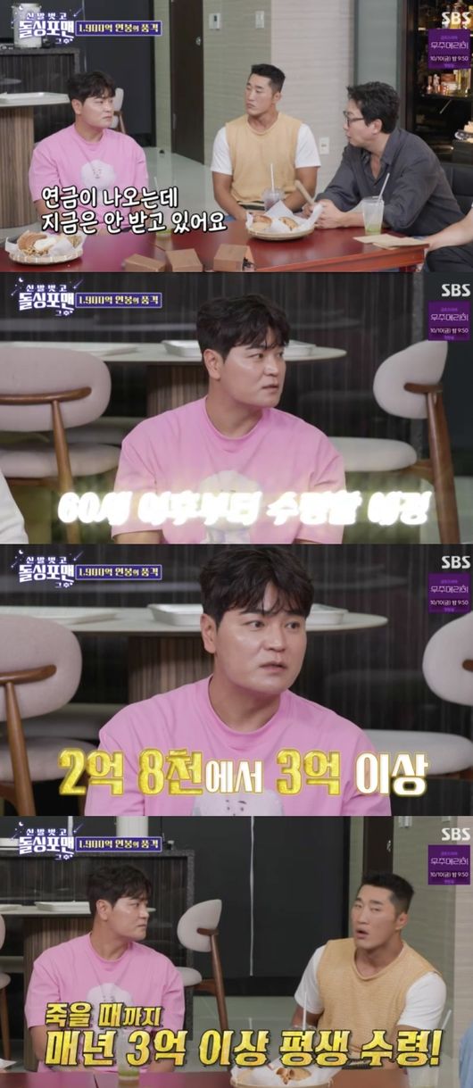누적 연봉 1900억 추신수는 연금을 받고 있냐는 질문에 “연금이 나오는데 지금은 안 받는다. 60세 이후에 받으면 금액이 더 커진다. 60세 이후에는 1년에 2억 8천에서 3억 정도 나온다. 죽을 때까지”라고 답해 모두를 놀라게 했다.