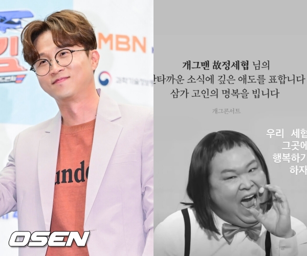 함께 공개된 사진에는 KBS 2TV 예능 프로그램 ‘개그콘서트’ 제작진이 정세협의 부고를 전하는 내용이 담겼다. ‘개그콘서트’ 측은 “개그맨 고 정세협 님의 안타까운 소식에 깊은 애도를 표합니다. 삼가 고인의 명복을 빕니다”라며 생전 ‘개그콘서트’에 출연한 정세협의 모습을 흑백 이미지로 공개했다.