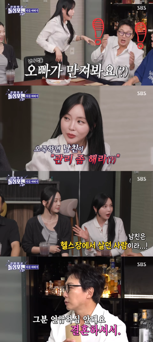 이를 보던 이상민은 “남자친구가 관리 좀 하라고 했다고?”라고 물었고, 홍진영은 “남친은 거의헬스장에 살던 사람이었다”고 반박했다. 탁재훈은 “그분(김종국)은 언급하면 안된다. 결혼하셔서”라고 만류하자, 홍진영은 “아니다. 다른 사람이었다”고 당황해 웃음을 안겼다.