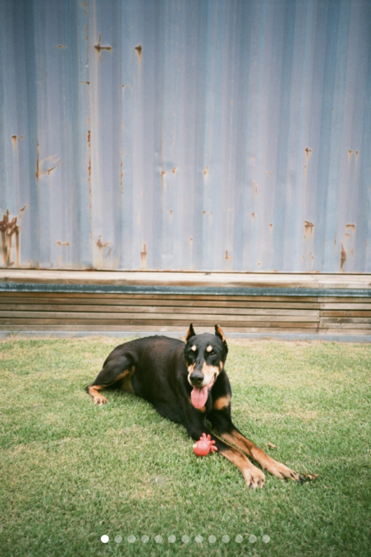 공개된 사진 속에는 잔디밭을 뛰어노는 벨의 모습과 함께 수영장에서 수영 중인 모습이 함께 담겼다. 필름 사진에 담겨있는 벨의 모습에 배정남의 애정이 물씬 담겼다.