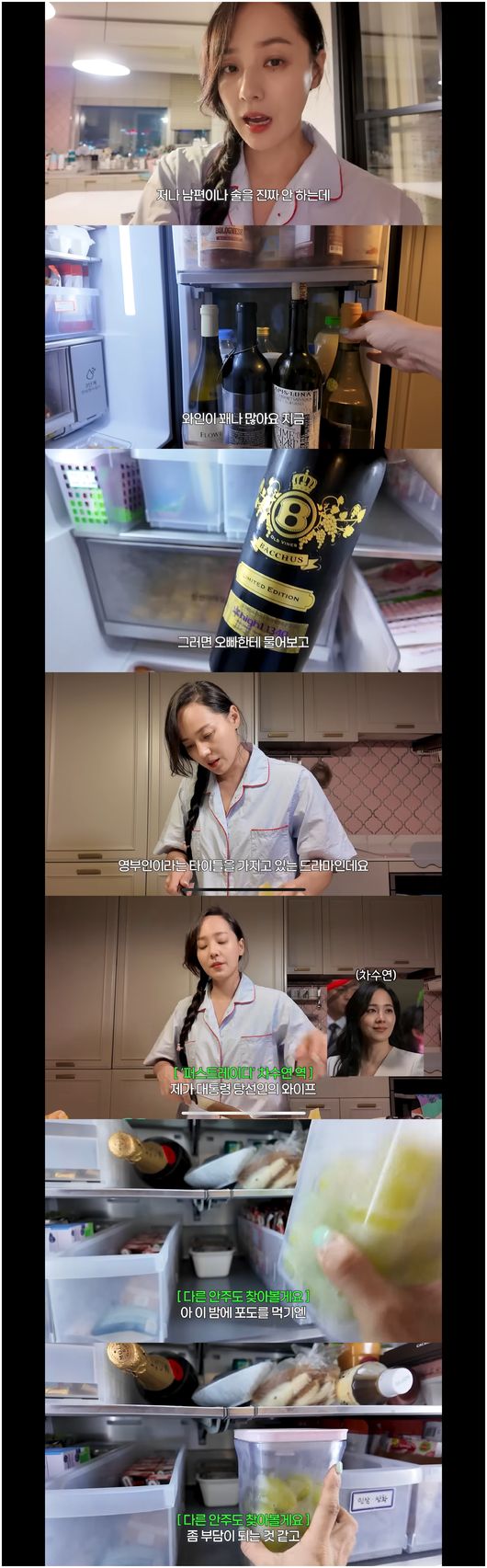 반듯한 이마에 우아한 콧날과 시원한 입매가 매력적인 유진은 여전히 소녀 같았다. 그는 펑퍼짐한 잠옷에 하나로 땋아내려 어깨 앞으로 내린 머리 모양을 한 채 “여기는 저희 집 부엌이다. 잠옷 차림이다. 오늘은 제 드라마 ‘퍼스트레이디’ 첫방을 하는 날이다. 시간이 얼마 남지 않았다. 1시간 남았나? 그래서 방송을 볼 건데, 저번에 가족 회의 때 나온 이야기가 있다”라며 소개했다.