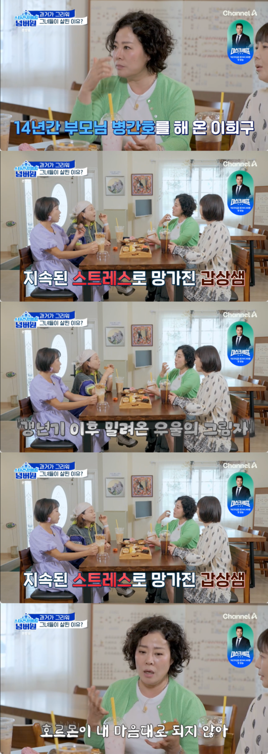 이희구는 "14년간 부모님 병간호를 했다"며, 그 스트레스로 인해 갑상선이 망가지고 갱년기까지 겹치면서 체중이 불어났다고 설명했다. 그는 "살이 꿈쩍도 안 한다. 호르몬이 내 마음대로 되지 않는다"며 쉽게 빠지지 않는 체중 때문에 겪는 고충을 토로했다.