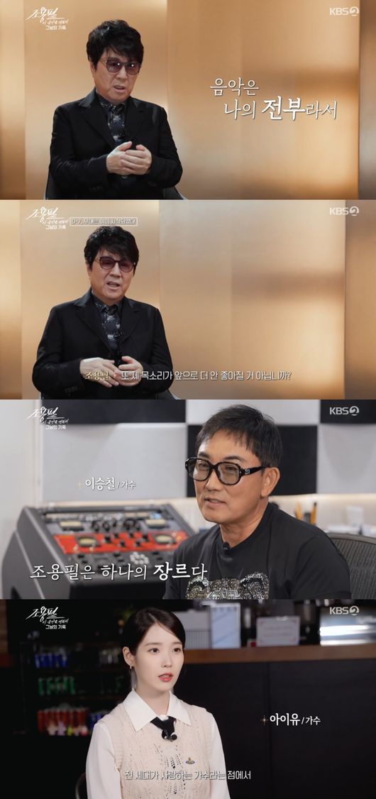 8일 방송된 KBS 2TV 특집다큐 ‘조용필, 이 순간을 영원히 - 그날의 기록’에서는 조용필의 단독 콘서트 무대 비하인드가 공개된 가운데 이승철, 인순이, 아이유가 등장했다.