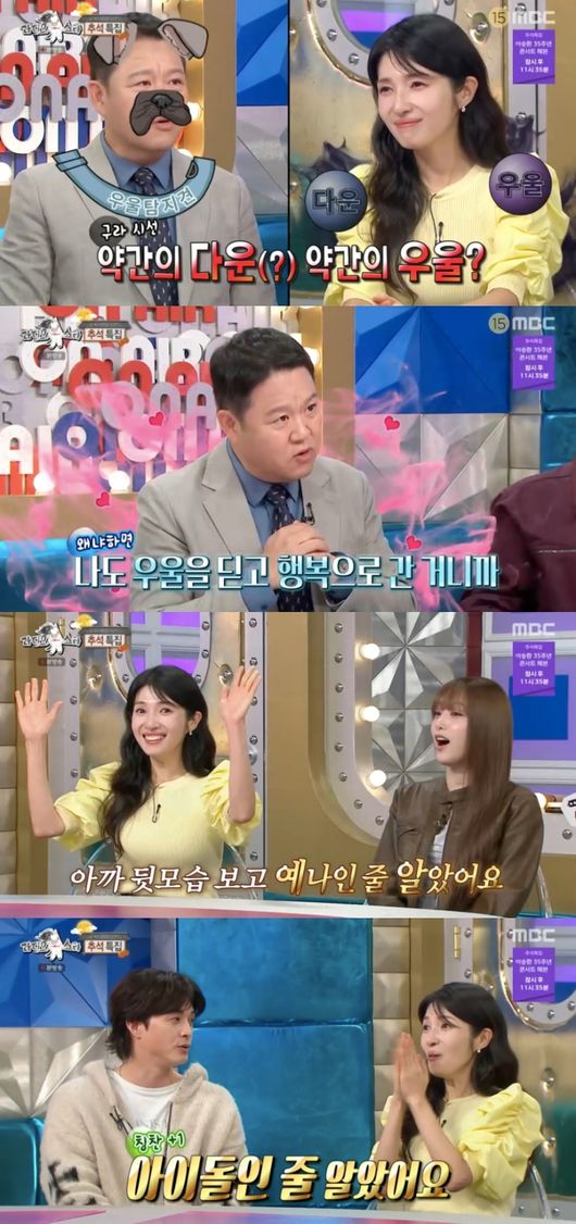 특히 김구라는 “몇 년 전에 제 시선이 약간의 다운, 약간의 우울이있다. 제가 그걸 정확하게 탐지한다. 아주 우울한 건 아니고 나도 우울을 딛고 행복으로 간 거니까”라면서도 “지금 보니까 예나한테 미안하지만 뒷모습 보고 예나인 줄 알았다”고 극찬했다.