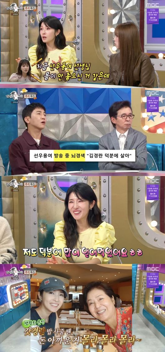‘라디오스타’ 김경란이 선우용여의 뇌경색을 최초로 발견한 생명의 은인이라고 밝혔다.