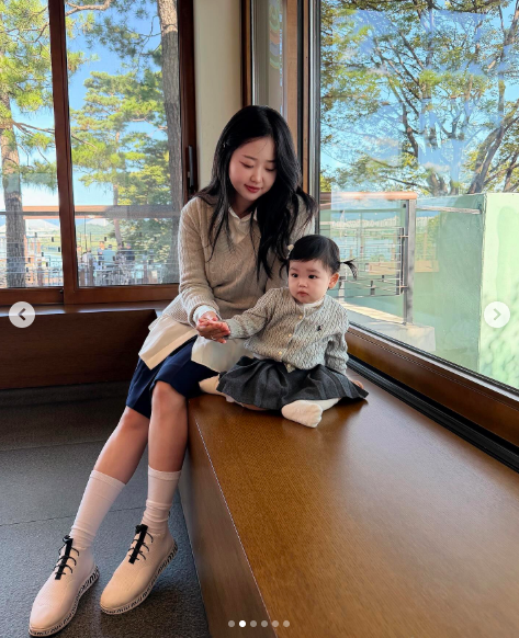 사진 속 김다예는 무릎까지 오는 스커트에 셔츠, 니트를 매치해 소녀미가 물씬 풍기는 가을룩을 선보였다. 딸 재이 역시 엄마와 비슷한 룩을 소화한 모습으로, 벌써부터 미모를 자랑했다.