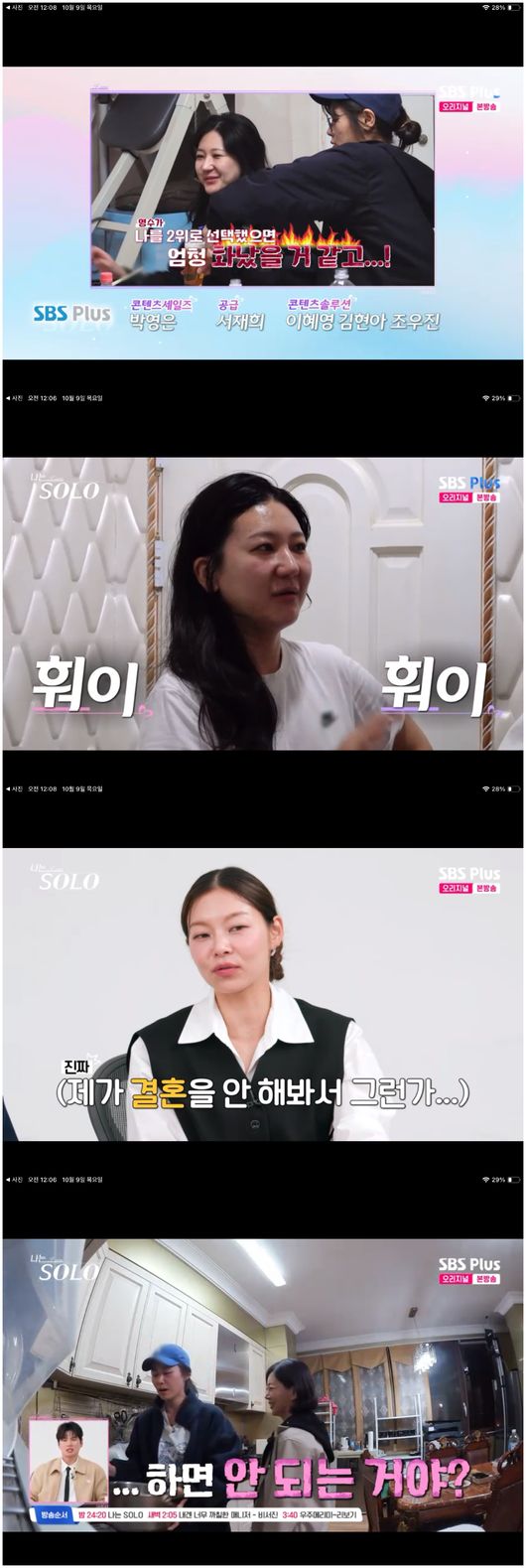8일 방영된 SBS 예능 ‘나는 SOLO - 나는 솔로’(이하 ‘나는 솔로’)에서는 3일 차가 되어도 첫날의 휘몰아치는 속도에 곱절이 더해진 돌싱들의 모습이 그려졌다.