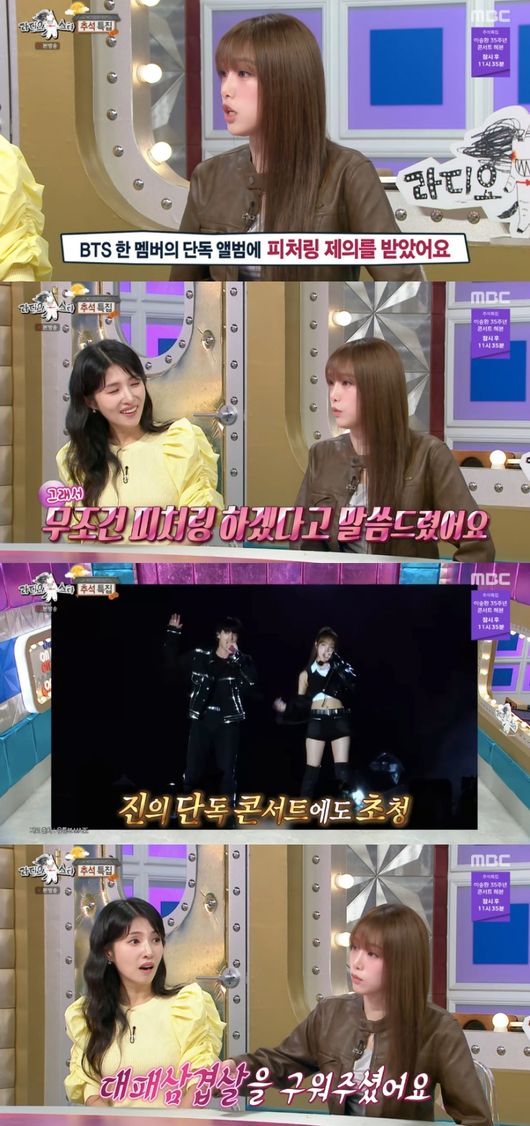 ‘라디오스타’ 최예나가 BTS 진과 함께 작업하면서 ‘월드 클래스는 다르다’는 걸 느꼈다고 고백했다.
