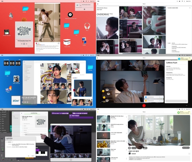 TWS(신유, 도훈, 영재, 한진, 지훈, 경민)는 8일 오후 10시에 하이브 레이블즈 유튜브 채널에 미니 4집 ‘play hard’의 하이라이트 메들리 영상을 게재했다. 컴퓨터 화면을 본뜬 영상 속 여섯 멤버는 아이콘, 사진 폴더, 음악 재생창 등 다양한 인터페이스를 자유롭게 넘나들며 신보의 수록곡 일부를 들려준다.