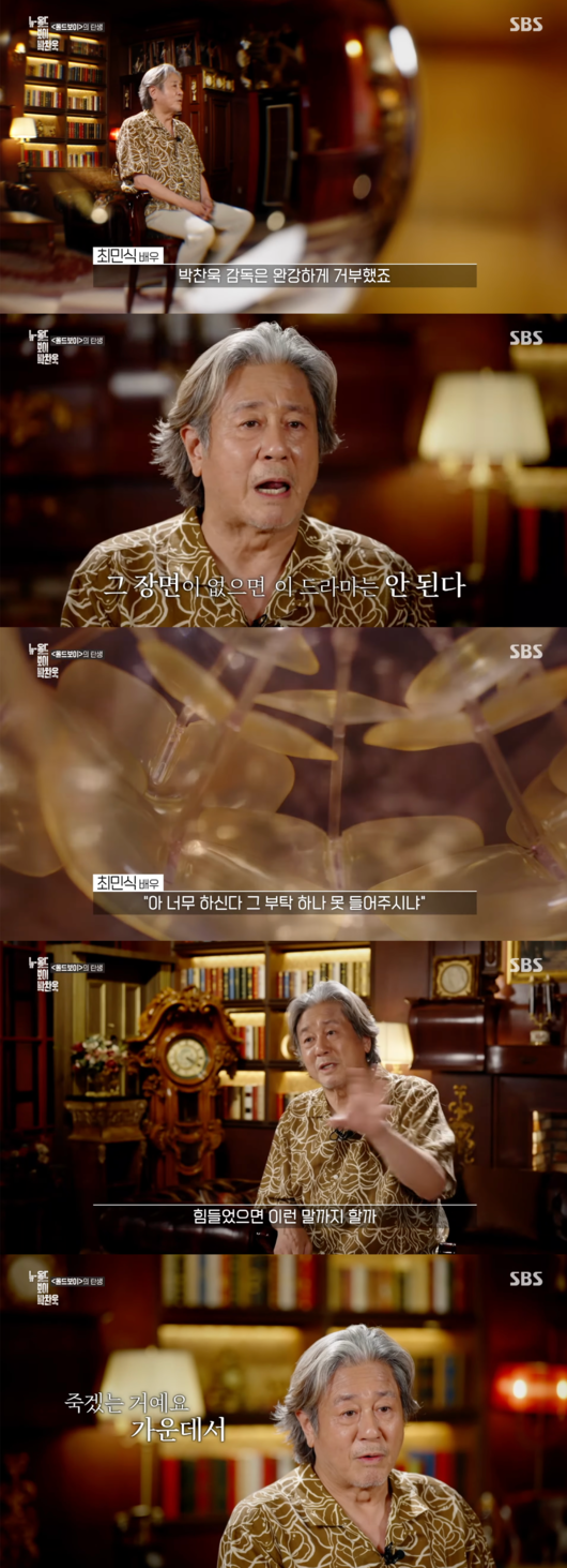 제작사 대표는 박찬욱 감독의 거부에 “너무 하신다. 그 부탁 하나를 못 들어주시냐”고 서운해 했고, 이를 지켜보던 최민식은 양측이 모두 이해돼 난처했다고.