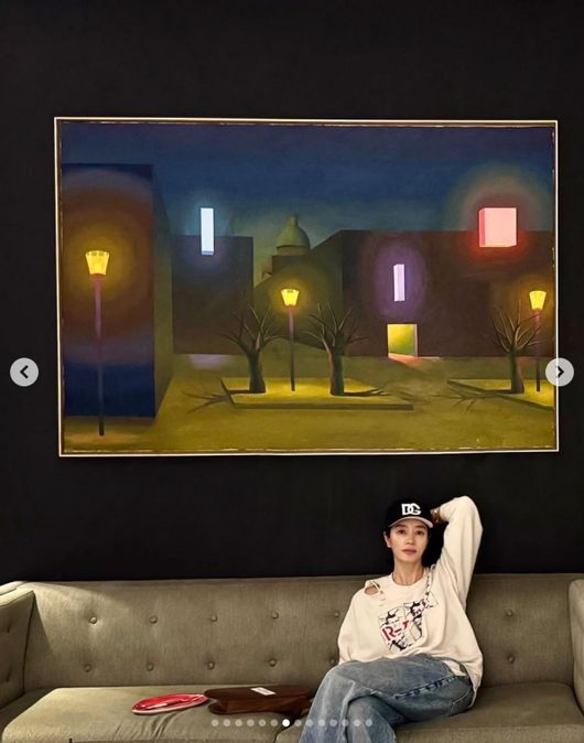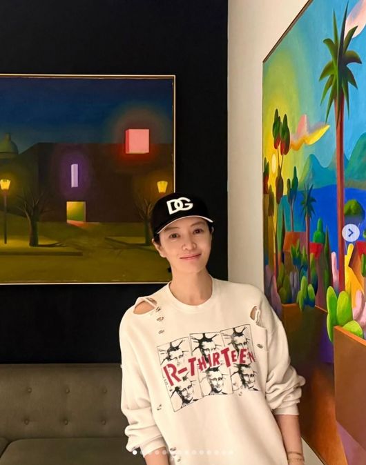 공개된 사진에는 전시회를 찾은 김혜수의 모습이 담겨 있었다. 김혜수는 편안한 맨투매 티셔츠에 청바지를 입고, 야구 모자를 쓴 일상 패션을 완성했다. 캐주얼한 패션이지만 김혜수 특유의 아우라가 느껴졌다.