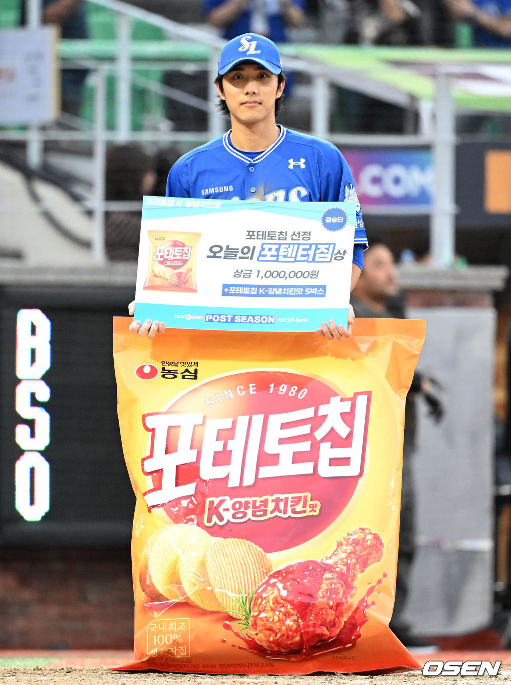 경기 종료 후 오늘의 포텐터짐상을 수상한 삼성 이재현이 포즈를 취하고 있다. 2025.10.09 /sunday@osen.co.kr