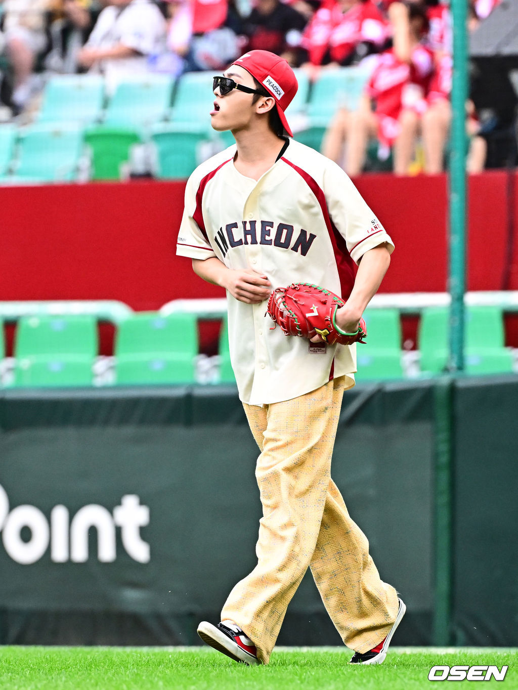 경기에 앞서 배우 최현욱이 시구를 하고 있다. 2025.10.09 /jpnews@osen.co.kr
