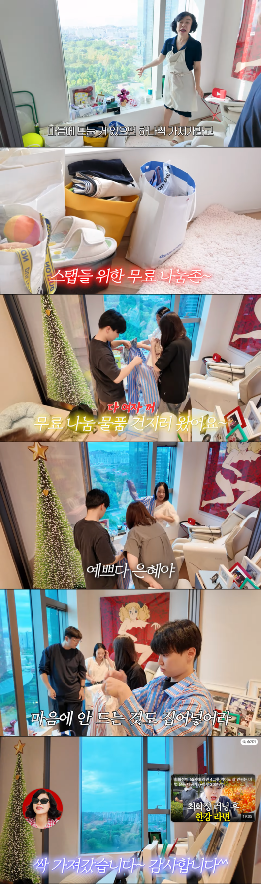 물건을 왜 이렇게 많이 쌓아두었냐는 질문에 최화정은 쿨하게 그 이유를 설명했다. 바로 스태프들을 위해 마련한 '무료 나눔존'이라는 것. “이거는 내가 마음에 드는 거 있으면 하나씩 가져가라고” 베푼 통 큰 배려였다.