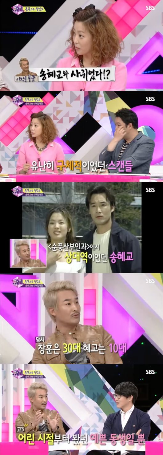 이창훈은 “당시 송혜교는 어머니 편찮은 이야기, 남자친구 고민도 서슴없이 얘기했다. 송혜교가 울거나 슬퍼해서 왜 그러냐고 물으면 ‘남자친구랑 헤어졌다’고 하더라. 우는 송혜교를 위로했더니 남들은 내가 울린 줄 알더라. 차에서 혜교가 우니까 내가 찬 줄 알더라”고 해명했다.