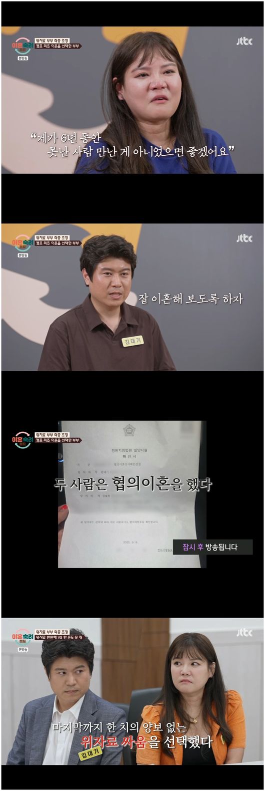 아내는 “이혼 후 남편이 사실 잘 못 살 것 같다. 그래도 잘 살면 좋겠다. 그래도 제가 6년 동안 못난 사람 만난 게 아니었으면 한다”라며 오로지 인간적인 정만이 남아 남편을 마저 떠나보냈다./osen_jin0310@osen.co.kr