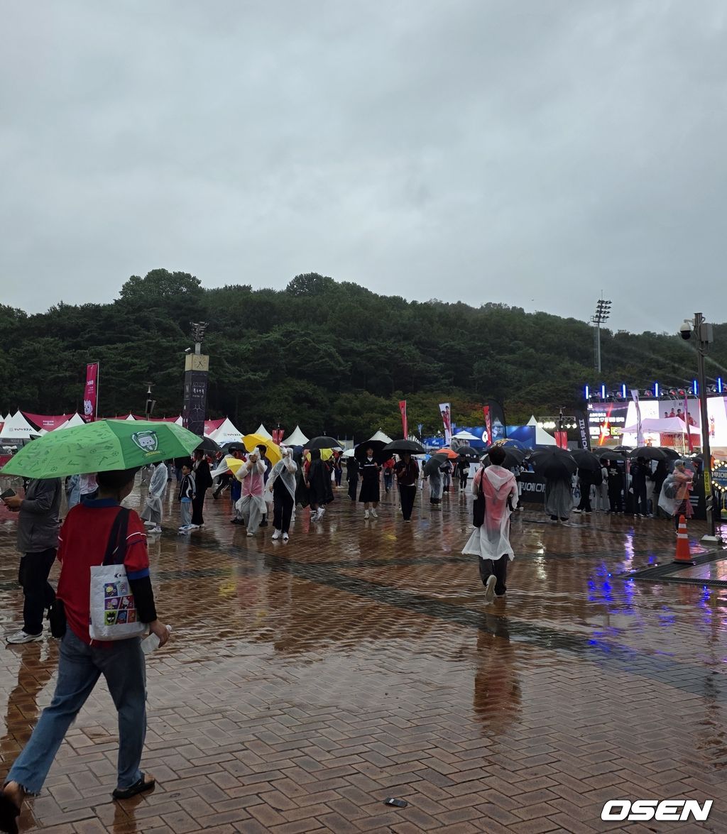 경기장 앞 광장에는 대표팀 공식 굿즈와 음식, 각종 이벤트를 즐기기 위한 팬들로 가득했다. 일부 팬은 비를 피해 천막 아래로 모여들었지만, 그 속에서도 응원 구호를 외치거나 기념사진을 찍으며 경기 전 분위기를 즐겼다.
