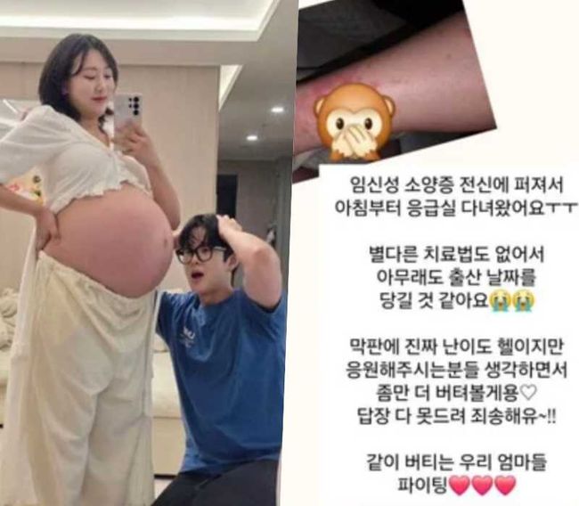 이 가운데, 10일인 오늘 또 한번 그는 자신의 계정을 통해 "임신성 소양증(가려움증) 전신에 퍼져서 아침부터 응급실 다녀왔다"며 응급실을 가야했던 상황으로 모두를 놀라게 했다. 심지어 별 다른 치료법 조차 찾지 못한 상태.