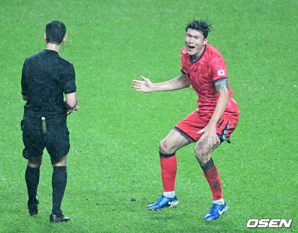 전반 한국 김민재가 반칙 판정에 아쉬워하고 있다. 2025.10.10 /sunday@osen.co.kr