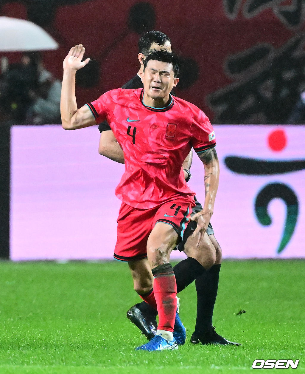 전반 한국 김민재가 반칙 판정에 아쉬워하고 있다. 2025.10.10 /jpnews@osen.co.kr