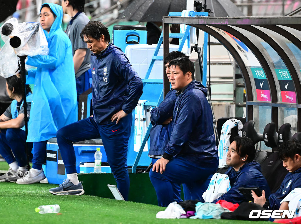후반 한국 홍명보 감독이 대량 실점에 아쉬워하고 있다. 2025.10.10 /jpnews@osen.co.kr
