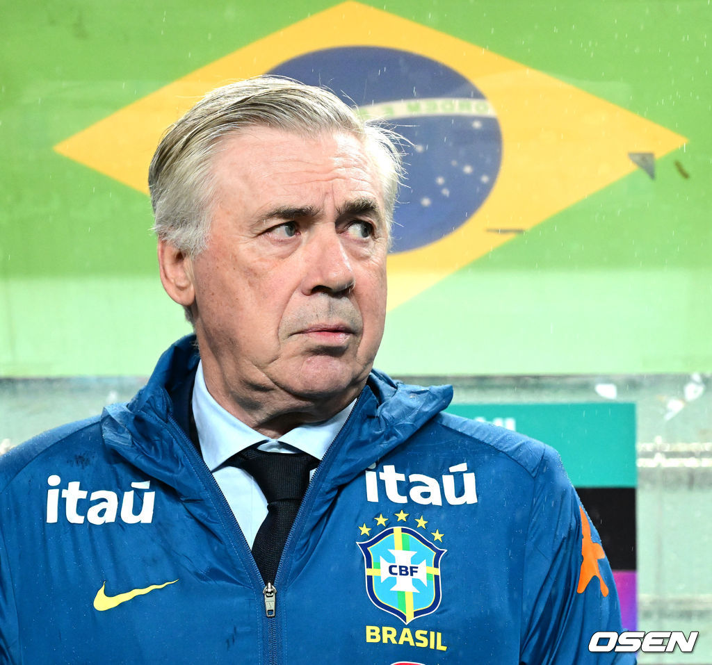 브라질 카를로 안첼로티 감독이 경기를 준비하고 있다. 2025.10.10 /jpnews@osen.co.kr