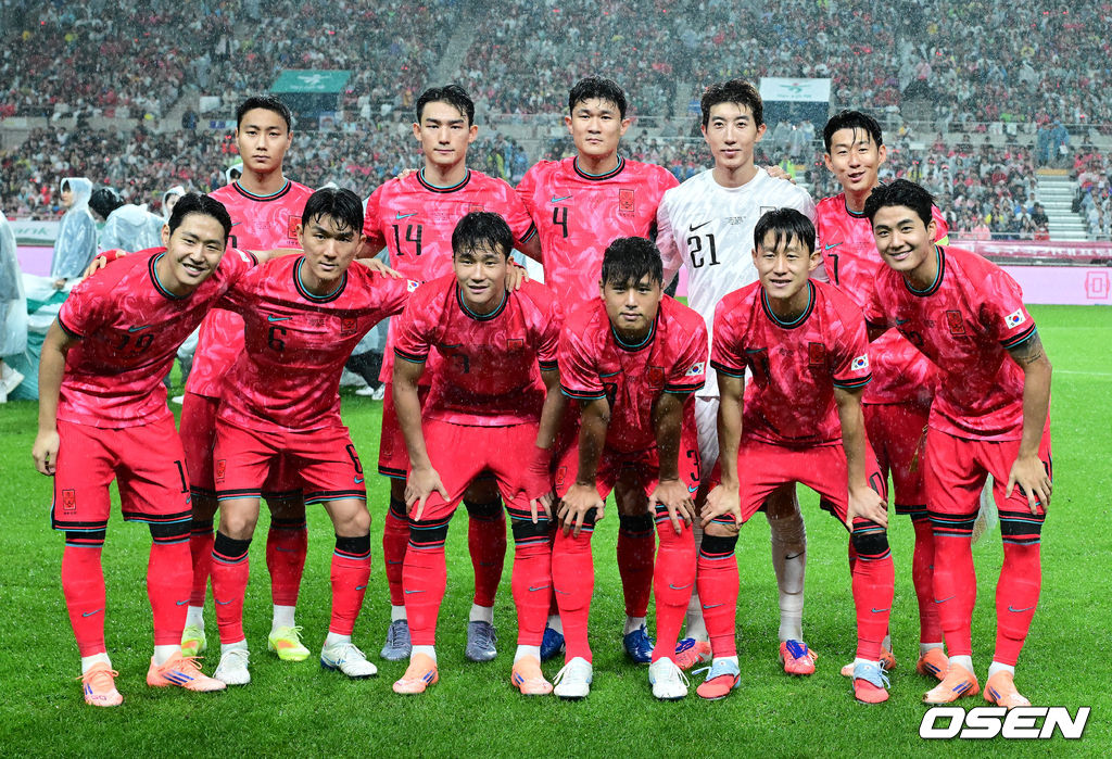 경기에 앞서 한국 베스트 11 선수들이 포즈를 취하고 있다. 2025.10.10 /jpnews@osen.co.kr