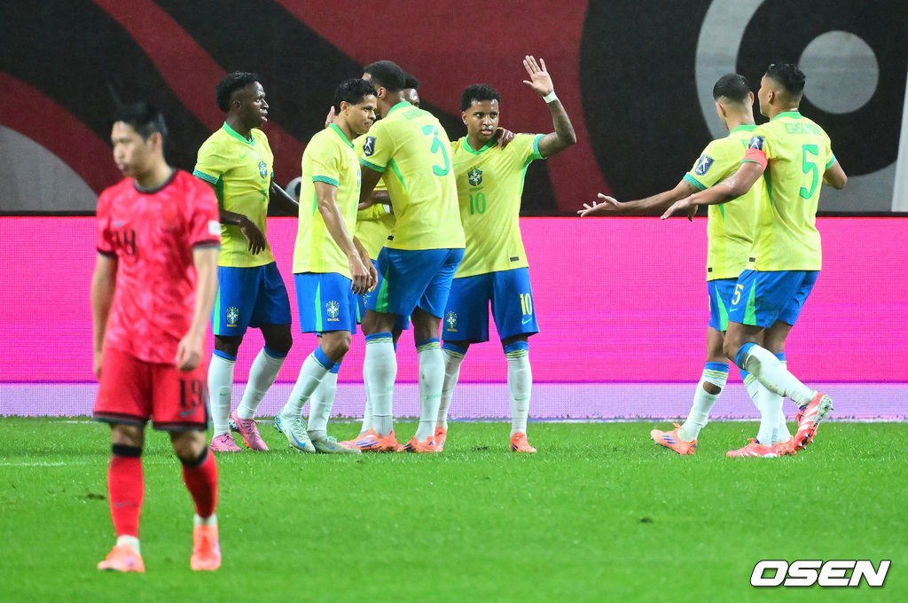 홍명보 감독이 이끄는 대한민국 남자 축구 국가대표팀은 10일 서울월드컵경기장에서 '세계 최강' 브라질을 상대로 A매치 평가전을 치러 이스테방(첼시)과 호드리구(레알 마드리드)에게 나란히 2골을 허용하면서 0-5로 대패했다.