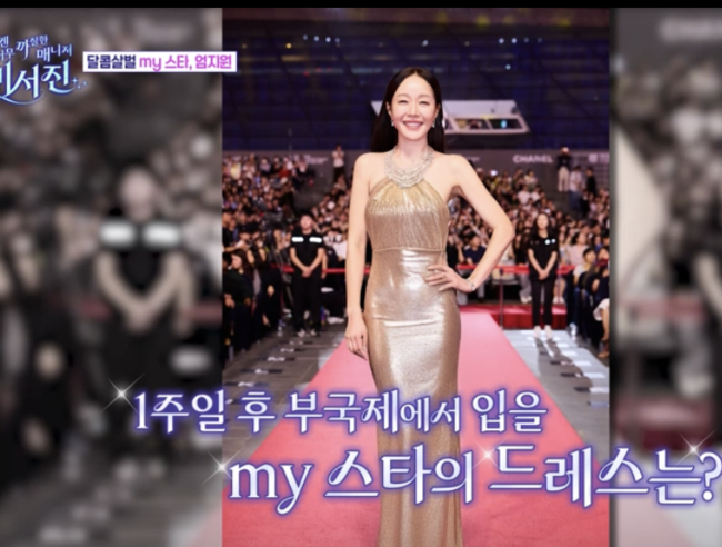 화려한 장식의 드레스를 발견, 두 사람은 “드레스 매장 처음이다”며 난감해했다. 하지만 시상자로 나선 엄지원은“심플하고 세련된 드레스가 필요하다”며 추천해달라고 했고, 한 드레스를 발견하곤 “너무 무겁다”며 놀랐다. 5kg 아령보다 무겁다며 손이 떨릴 정도.