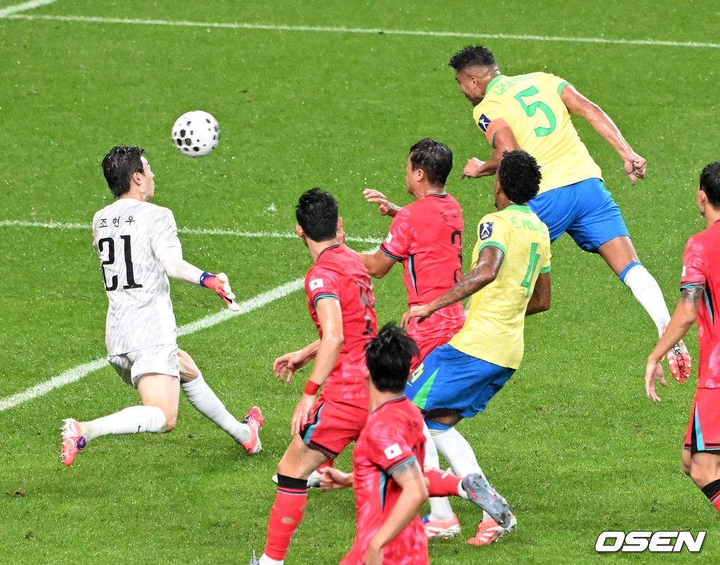 전반 브라질 카제미루가 슛을 성공시켰지만 오프사이드로 취소 됐다. 2025.10.10 /sunday@osen.co.kr