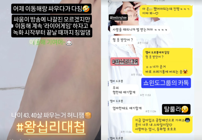 이후 김희철은 동해와 나눈 대화를 공개했다. 동해는 "형 이거 올려도 되지?"라며 김희철의 사진을 보냈고, 김희철은 "아 또라이 새끼 ㅋㅋㅋ밑에 포샵해서 올려"라고 말했다. 이에 동해가 "11월 6일에 올릴게"라고 예고하자, 김희철은 "아 존X 팼어야되는데 진짜ㅋㅋ 이따 봐"라고 말했다.
