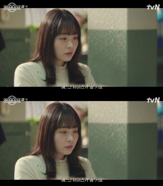 11일 첫 방송된 tvN 토일드라마 ‘태풍상사’에서는 태풍상사의 경리로 일하는 오미선(김민하)의 모습이 그려졌다.