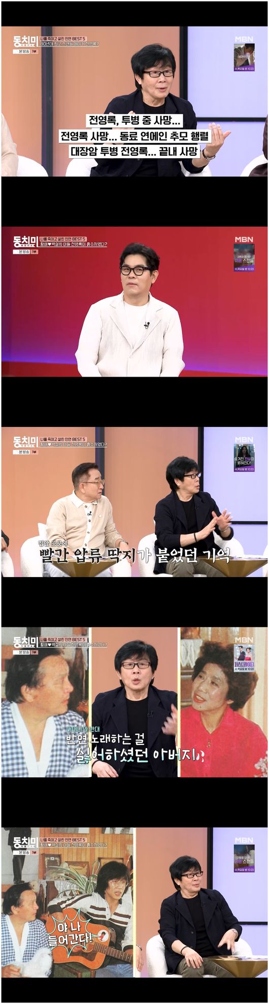 전영록은 “전 무서운 것도 봤다. 빨간 딱지 붙은 것도 봤다”라면서 “아버지가 일이 없으시면 어머니가 벌어오시는데, 두 분 다 일이 없으시면 어쩔 수 없었다”라며 휘황찬란했던 부모님의 유명세와 다르게 가난했던 시절을 전했다.