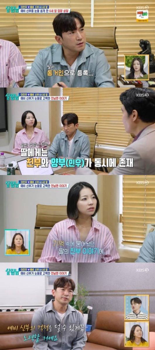 이후 이민우는 가사법 전문 이인철 변호사를 찾았고, 이 변호사는 “일반적으로 재혼 가정이 혼인신고를 하면 배우자의 자녀도 내 가족이라고 생각하지만, 법적으로는 가족이 아니다. 단순히 동거인에 불과하다. 가족이 되기 위해선 입양 절차를 거져야 한다”라고 설명했다. 특히 친양자 입양을 위해서는 친부의 동의가 필요하다는 말에 이민우도, 예비 신부도 당황했다. 뜻밖의 현실을 마주한 이민우는 잠시 당황했지만, 이민우는 ‘친양자 입양’을 하겠다고 결심하며 예비 신부를 안심시켰다.