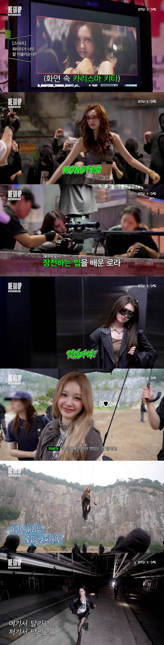 그룹 베이비몬스터의 강렬한 액션 연기가 돋보이는 미니 2집 타이틀곡 'WE GO UP' 뮤직비디오 촬영 비하인드가 12일 깜짝 공개됐다.
