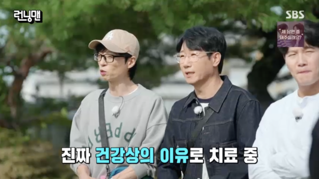 지석진은 “건강검진에서 치료를 요한다”고 설명했고, 하하는 “치료 끝나면 금방 복귀할 거다”라고 거들었다. 또한 유재석은 “전화 통화했는데 지금 많이 괜찮아졌다고 한다”라고 밝혔다.