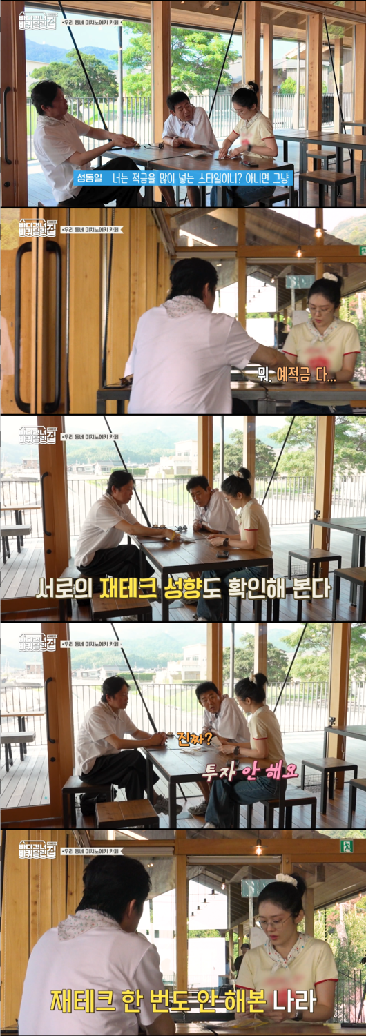 장나라의 꼼꼼한 모습도 공개됐다. 성동일은 "적금을 많이 하는 스타일이냐"고 물었다. 장나라는 "예금, 적금 다 한다"고 답하며 인정했다.