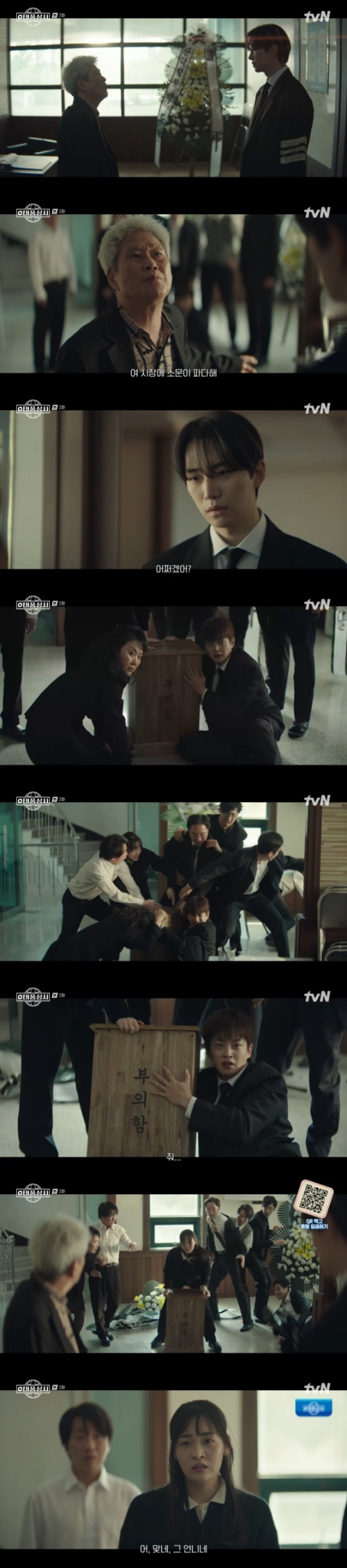 12일 오후 방송된 tvN 토일드라마 '태풍상사' 2회에서는 강태풍(이준호 분)이 아버지 강진영(성동일 분)의 갑작스러운 죽음으로 장례식을 치르는 모습이 그려졌다.