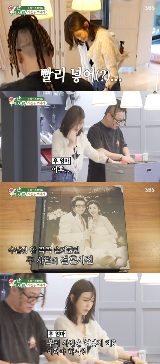 가장 당황스러운 순간은 서랍장 정리 중 두 사람의 결혼 앨범이 발견됐을 때였다. 전처는 앨범을 보자마자 "빨리 닫으라"며 질색하는 모습을 보였다. 이어 앨범을 치우려다 멈칫하며 "우리 사진은 어떻게 해? 버려야 하나?"라며 현실적인 고민을 토로했다.