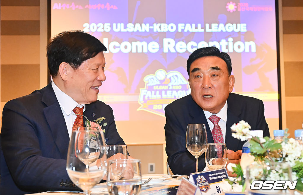 13일 KBO가 주최하고 울산광역시와 문화체육관광부의 후원으로 개최되는 2025 울산-KBO Fall League 환영 리셉션이 김두겸 울산광역시장, 허구연 KBO 총재, 참가팀 감독 및 대표 선수 등이 참석한 가운데 호텔현대 바이 라한 울산에서 열렸다.