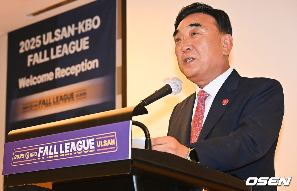 13일 KBO가 주최하고 울산광역시와 문화체육관광부의 후원으로 개최되는 2025 울산-KBO Fall League 환영 리셉션이 김두겸 울산광역시장, 허구연 KBO 총재, 참가팀 감독 및 대표 선수 등이 참석한 가운데 호텔현대 바이 라한 울산에서 열렸다.