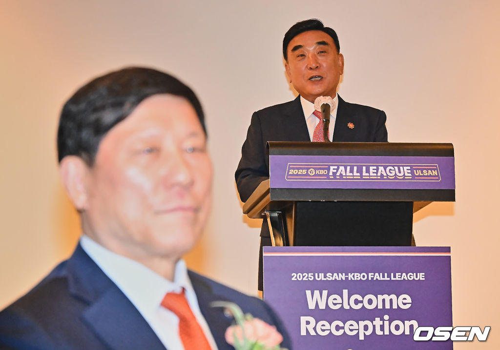 13일 KBO가 주최하고 울산광역시와 문화체육관광부의 후원으로 개최되는 2025 울산-KBO Fall League 환영 리셉션이 김두겸 울산광역시장, 허구연 KBO 총재, 참가팀 감독 및 대표 선수 등이 참석한 가운데 호텔현대 바이 라한 울산에서 열렸다.