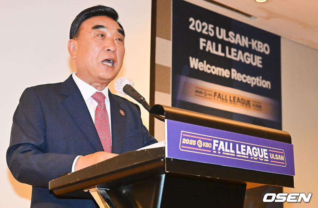 13일 KBO가 주최하고 울산광역시와 문화체육관광부의 후원으로 개최되는 2025 울산-KBO Fall League 환영 리셉션이 김두겸 울산광역시장, 허구연 KBO 총재, 참가팀 감독 및 대표 선수 등이 참석한 가운데 호텔현대 바이 라한 울산에서 열렸다.