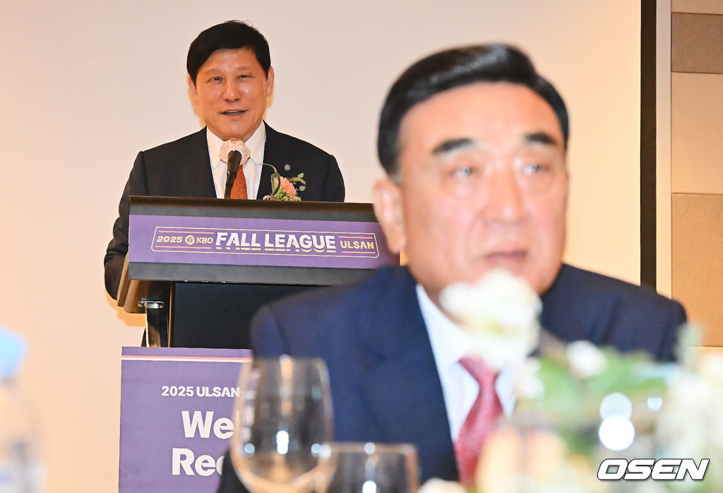 13일 KBO가 주최하고 울산광역시와 문화체육관광부의 후원으로 개최되는 2025 울산-KBO Fall League 환영 리셉션이 김두겸 울산광역시장, 허구연 KBO 총재, 참가팀 감독 및 대표 선수 등이 참석한 가운데 호텔현대 바이 라한 울산에서 열렸다.