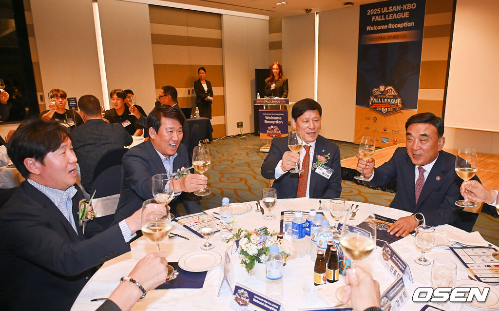 13일 KBO가 주최하고 울산광역시와 문화체육관광부의 후원으로 개최되는 2025 울산-KBO Fall League 환영 리셉션이 김두겸 울산광역시장, 허구연 KBO 총재, 참가팀 감독 및 대표 선수 등이 참석한 가운데 호텔현대 바이 라한 울산에서 열렸다.